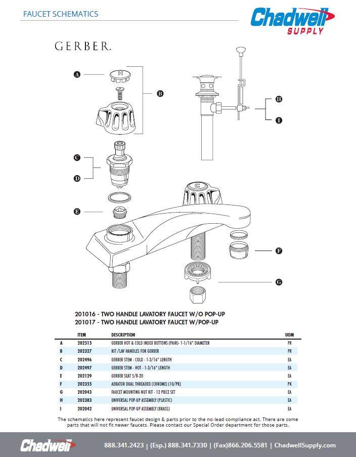 GERBER TWO HANDLE LAVATORY FAUCET WITH POP-UP - CHROME