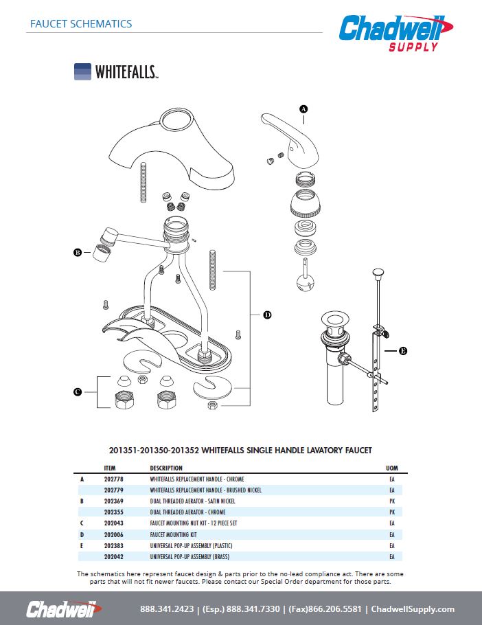 WHITEFALLS SINGLE LEVER LAVATORY FAUCET - CERAMIC DISK FUNCTION - WITHOUT POP-UP - CHROME