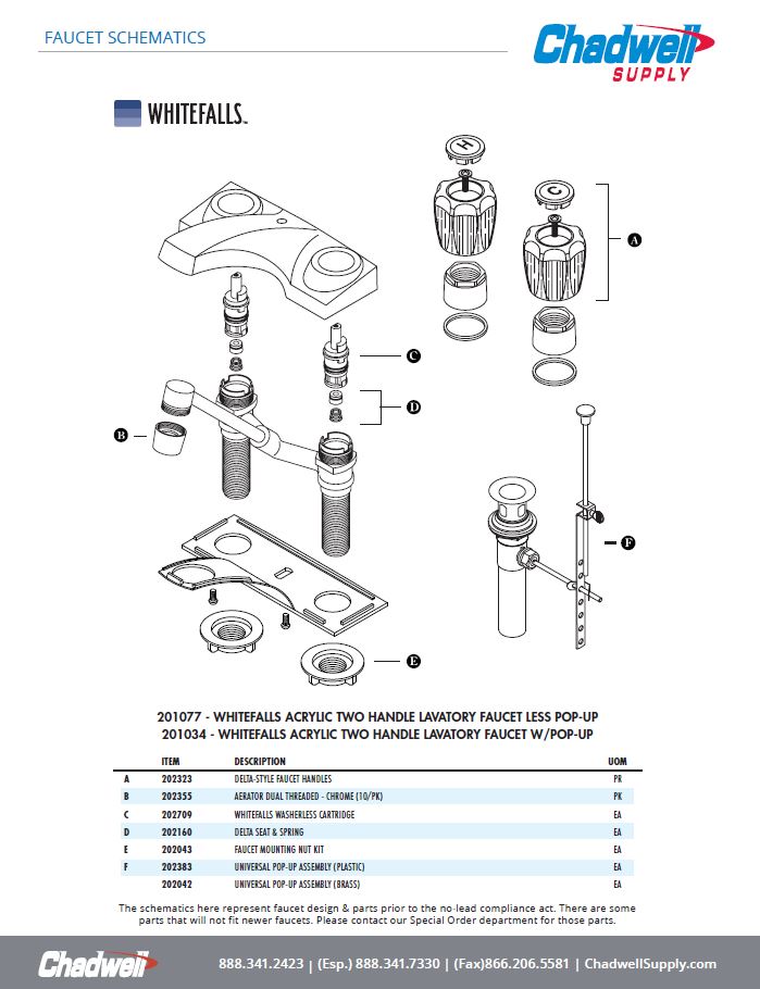 WHITEFALLS ACRYLIC TWO HANDLE LAVATORY FAUCET WITH POP-UP - CHROME