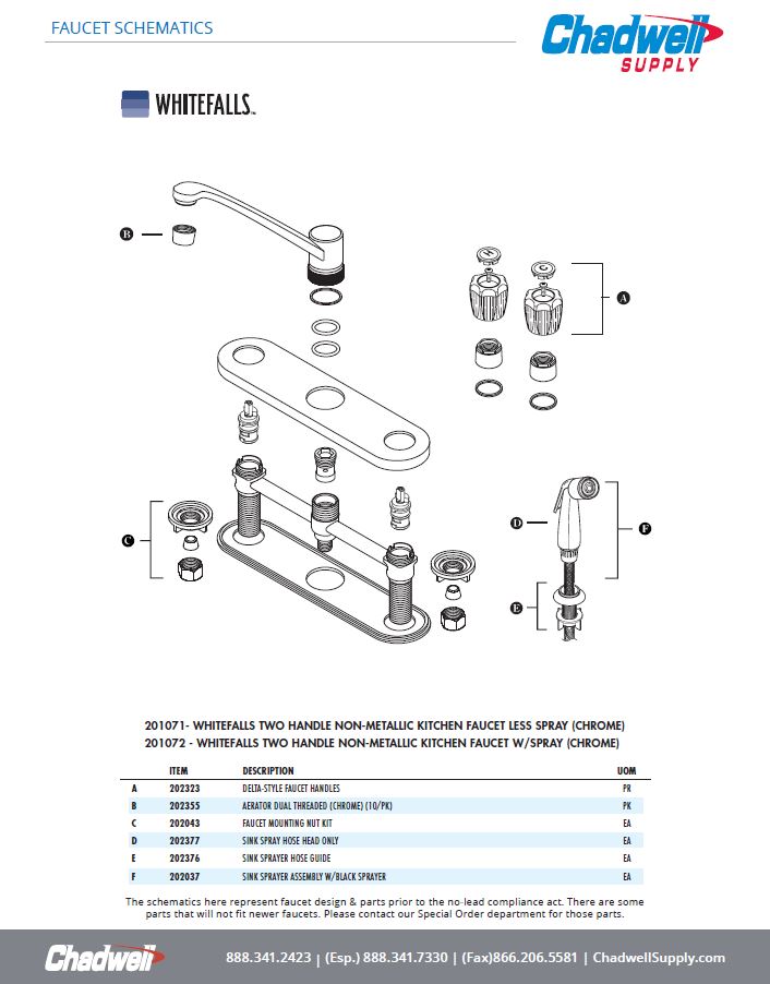 WHITEFALLS TWO HANDLE NON-METALLIC KITCHEN FAUCET WITH SPRAY - CHROME