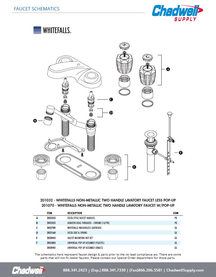 WHITEFALLS TWO HANDLE NON-METALLIC LAVATORY FAUCET WITH POP-UP - CHROME